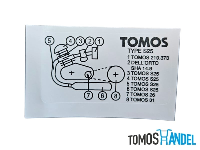 Sticker / stikker voor het type S25. Om op het frame van een S25 te plakken onder het zijscherm. Deze sticker geeft het type frame aan. Leuk als je je brommer opnieuw hebt laten spuiten, maar wel weer de originele sticker terug wil.Specificaties