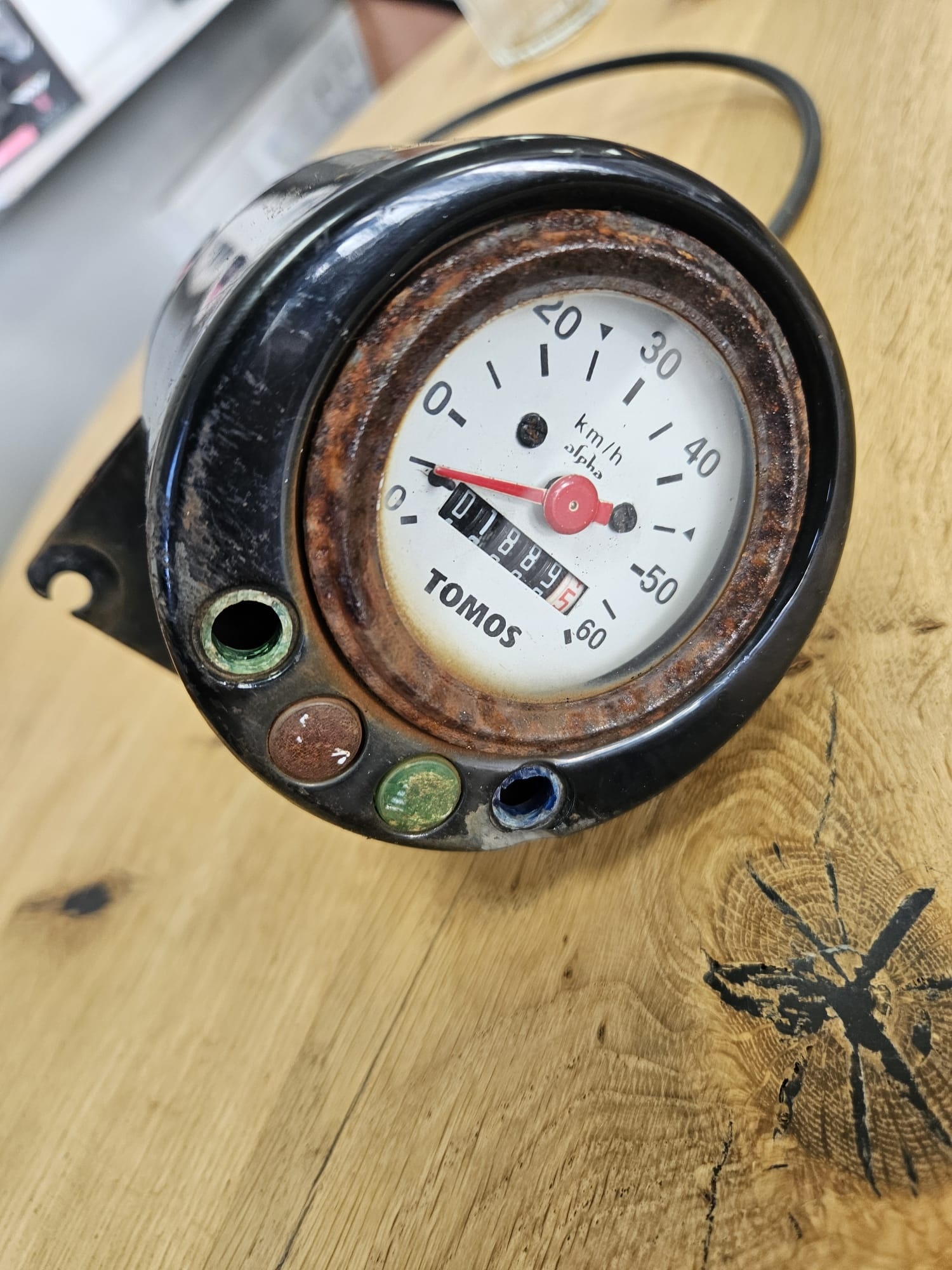 Complete set om een kilometerteller / snelheidsmeter te monteren op je brommer. Komt van een nieuw type Tomos Flexer af, maar kan ook worden gebruikt op Tomos A35 brommers met een NT voorvork. De snelheidsmeter is getest en werkt. LET OP! Onderdelen uit de koopjeshoek kunnen niet retour. Op onderdelen van de koopjeshoek zit geen garantie!Specificaties