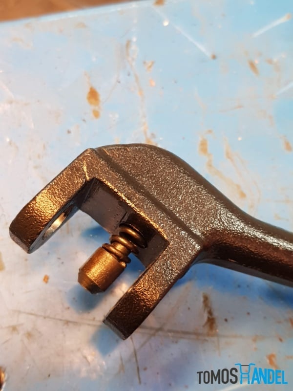 Veer voor in de kickstarter. In de veer valt een palletje wat er voor zorgt dat de kickstarter niet gaat bungelen.Specificaties