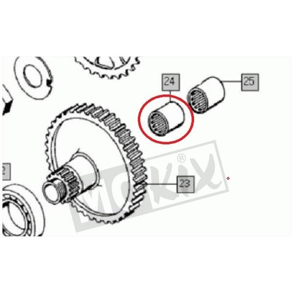 Naaldlager voor het middencarter tandwiel / voortandwielas(aandrijftandwiel). In dit naaldlager zit een keerring, als deze keerring niet meer goed is zul je een lekkage krijgen bij het voortandwiel. Monteer dit lager + artikel 55236 + artikel T033.006 om dit probleem te verhelpen.Specificaties