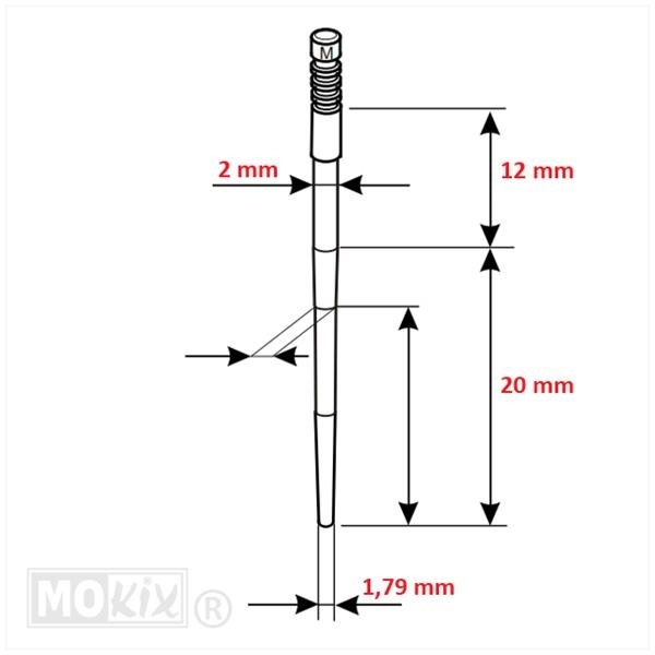 Originele gasnaald voor PHVA carburateurs, dikker dan er origineel in de PHVA 17,5 word geleverd.Specificaties