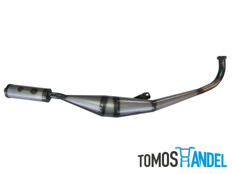 Handgemaakte uitlaat uit Nederland! Deze uitlaat is speciaal berekend voor 65cc brommers zonder binnenrotor ontsteking en 50cc cilinders met binnenrotor. Op 65cc cilinders met binnenrotor gaat deze uitlaat natuurlijk ook erg goed. Deze uitlaat is voor E1 modellen. Heb je een E2 frame, bestel dan een losse uitlaatsteun mee.Specificaties