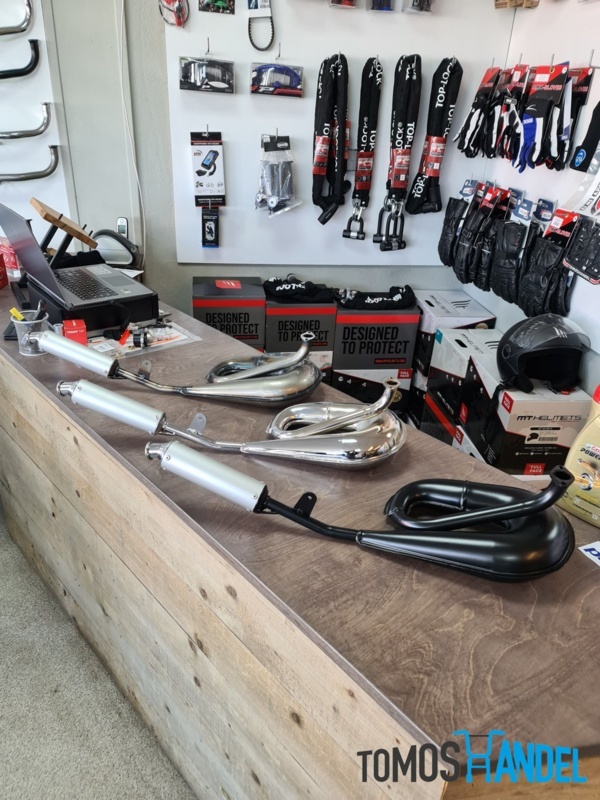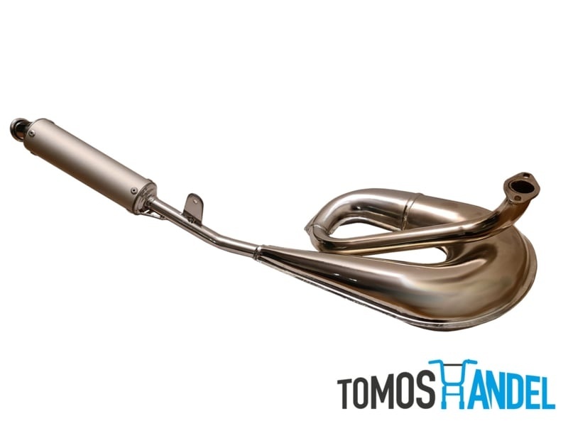 Tomos A3 uitlaat Techno Krul Circuit. Voor 50cc en 65cc. Matige kwaliteit, maar leuk uitlaatje voor de prijs.Specificaties