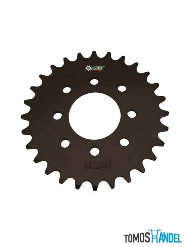 Tandwiel voor Tomos A35 28 tanden. Van het merk Esjot (A-kwaliteit). Vervang tandwielen en ketting altijd als een set, deze slijten op elkaar in!Specificaties