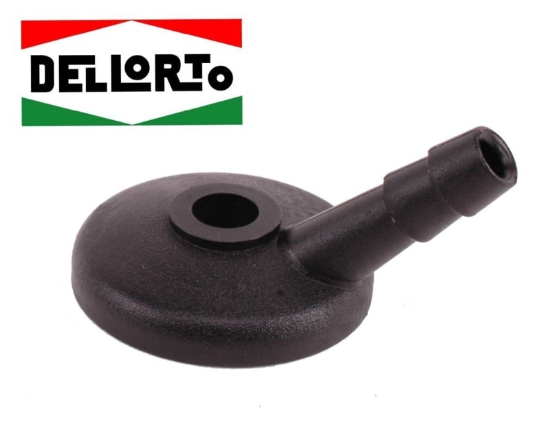 Zwarte banjo benzine inlaat van de carburateur. Kunststof zwart. Filterdeksel.Specificaties