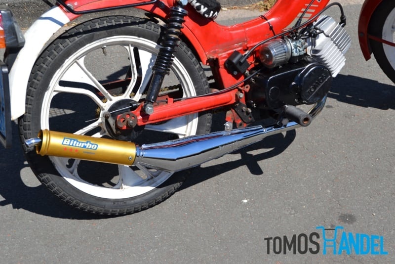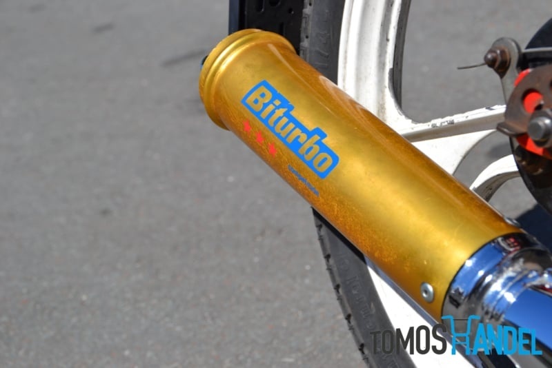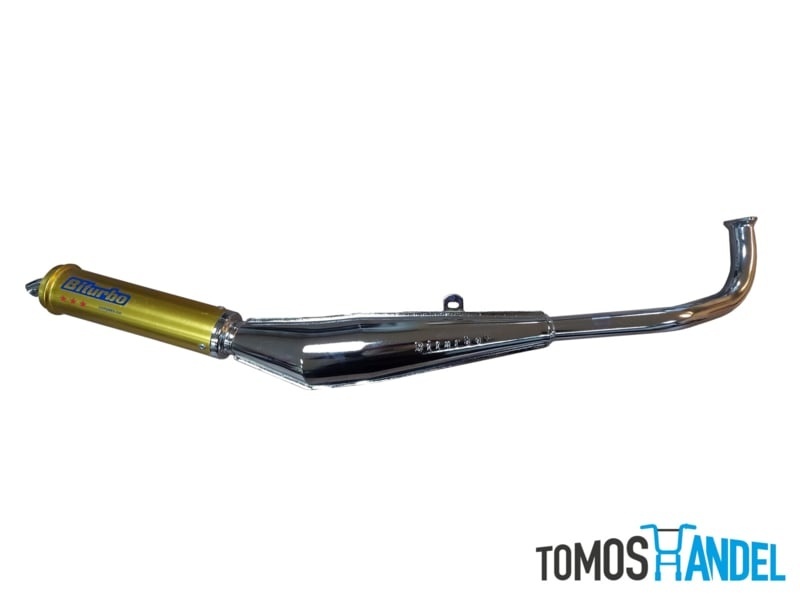 Biturbo uitlaat voor Tomos A35. Voor 50 en 65cc. Matige kwaliteit, maar leuke uitlaat voor de prijs.Specificaties