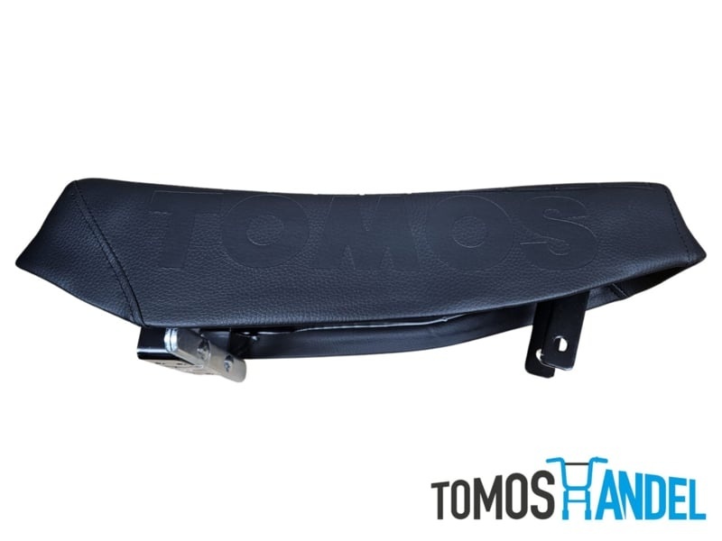 Zwart lang zadel / bananenzadel voor Tomos A35. Inclusief beugelset. Deze buddyzit is met gestanst logo aan allebei de kanten.Specificaties