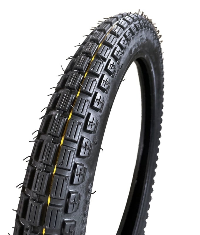 Een ideale noppenband voor als je met je brommer op de weg wil kunnen rijden, maar toch even wat extra grip wil als je een keer een zandpad of grasveld meepakt! Deze crossband / enduro band heeft een breedte van 2.50, dat past in je originele achterbrug en voorvork. 16 inch.Specificaties