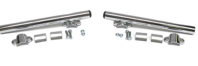 Clip on stuur set chroom. Alles op de afbeelding inbegrepen. Te bevestigen op de voorpoten / voorvork. Clippon. Bijvoorbeeld op EBR voorvork te gebruiken (oud type).Specificaties