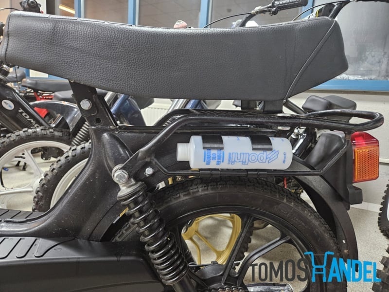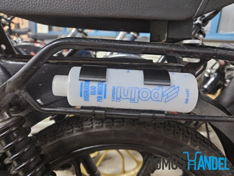 2 losse houders om je polini mengfles te bevestigen aan je achterdrager / bagagedrager. Klik de beugels eenvoudig op je achterrekje en beveilig ze met elk één kabelbinder. Schuif nu je Polini mengfles in de kunststof houder. Nooit meer je olie vergeten!Specificaties