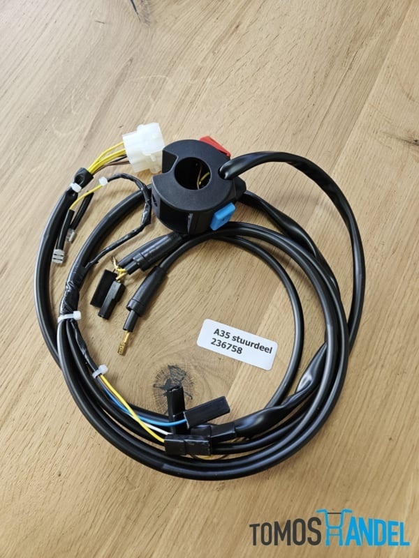 Kabelboom (voorste gedeelte) voor Tomos A35 OT. Kijk goed of de stekkers overeenkomen met de stekkers die op jouw Tomos zitten.Specificaties