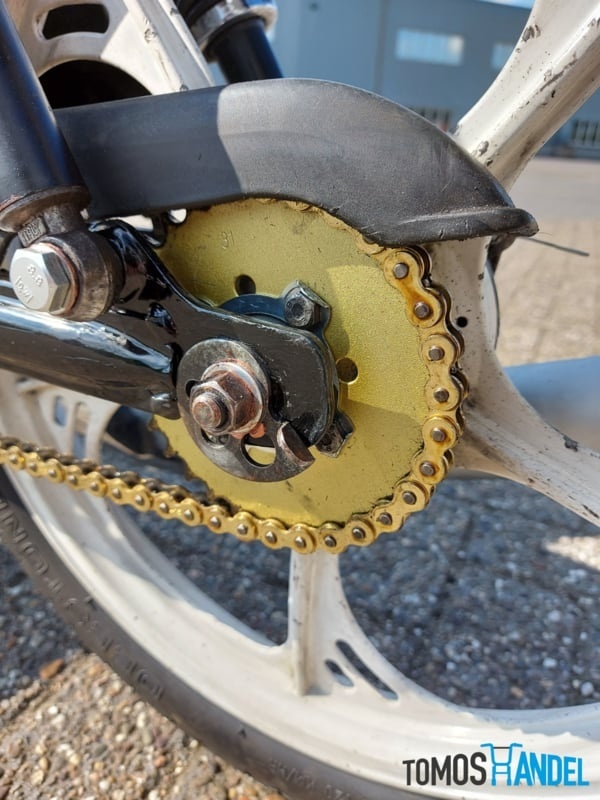 Ketting met goude kleur voor Tomos A35. Voor alle vertandingen is 106 schakels genoeg (bij de A35 modellen). Vervang de ketting en tandwielen altijd als set! Ketting en tandwielen slijten op elkaar in. Het heeft dus geen zin om alleen de ketting of alleen de tandwielen te vervangen. Altijd in een set vervangen (dus nieuw voortandwiel, nieuw achtertandwiel en nieuwe ketting).Specificaties
