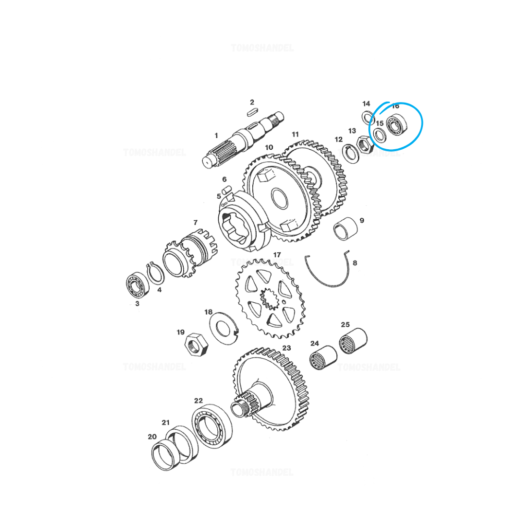 Dit SKF 6000 kogellager is een essentieel onderdeel van de carterkap / koppelingsdeksel van je Tomos motorblok. Het bevindt zich in lijn met de hoofdas (versnellingsas) en ondersteunt de overbrenging van kracht binnen het versnellingssysteem. Met een nauwkeurige maatvoering van 10x26x8 mm zorgt dit lager voor een stille, soepele en langdurig betrouwbare werking van je versnellingsbak.