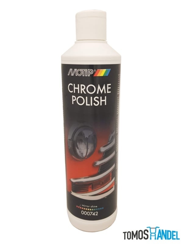 Motip chrome polish. 500mL. Na het poetsen de gepoetste delen met een schone droge doek afpoetsen voor het perfect resultaat.Specificaties