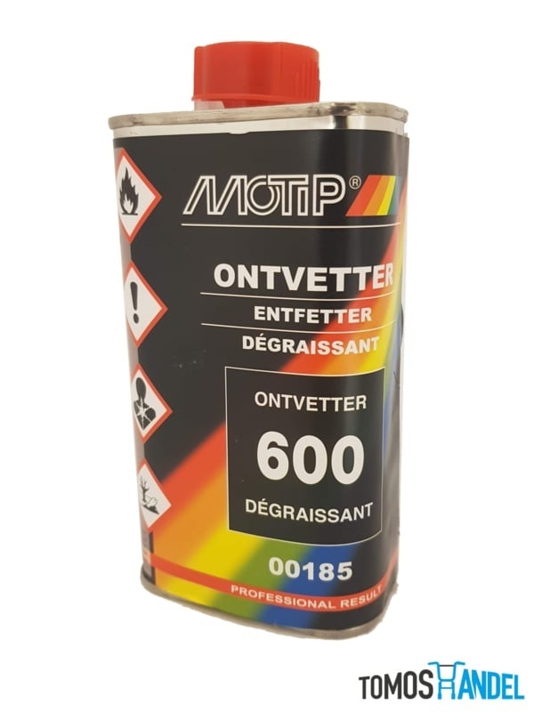 Ontvetter van Motip. Perfect voor bij het spuiten van een brommer. Als vervanging van Thinner. 200mLSpecificaties