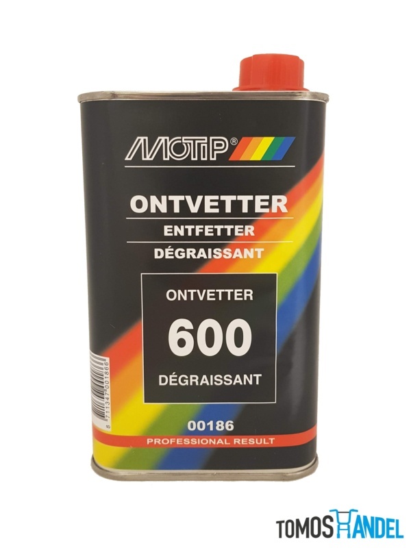 Ontvetter van Motip. Perfect voor bij het spuiten van een brommer. Als vervanging van Thinner. 500mLSpecificaties