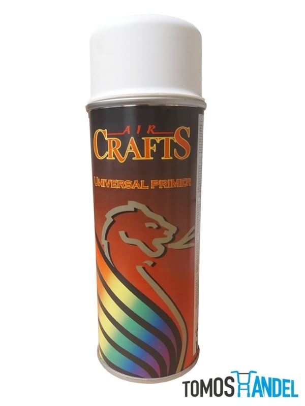 Motip spuitverf primer. 400mL spuitbus met witte primer.