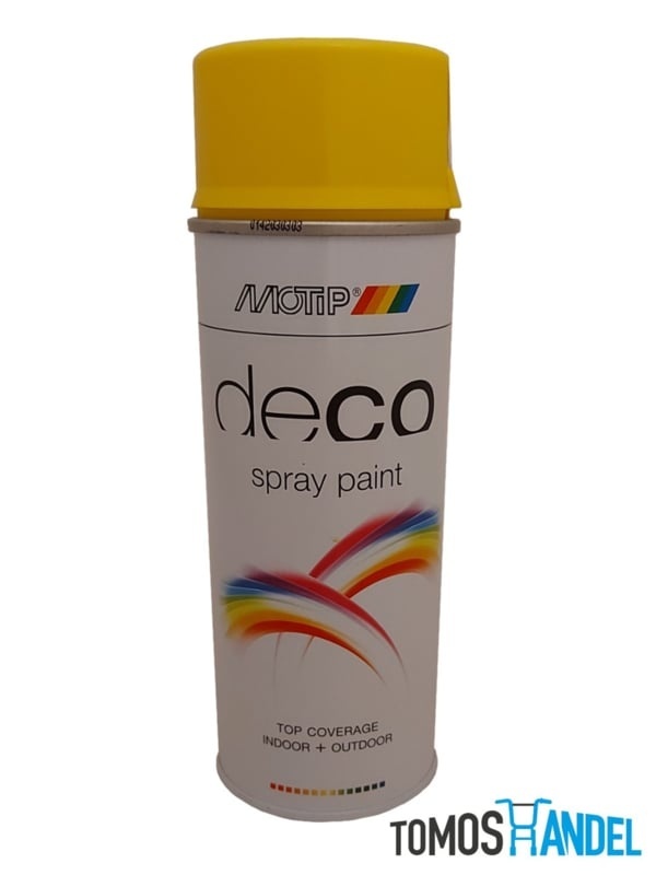 Motip spuitbus geel hard (RAL 1021). Alkyd lak, niet overspuiten met acryllak of nitro-cellulose lak. Primer aanbrengen.Specificaties