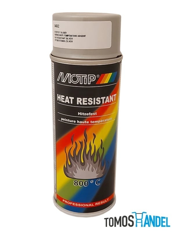 Hittebestendige lak van Motip. Perfect voor op uitlaten, carters of cilinders. 400mL. Geen primer gebruiken. Silver.Specificaties