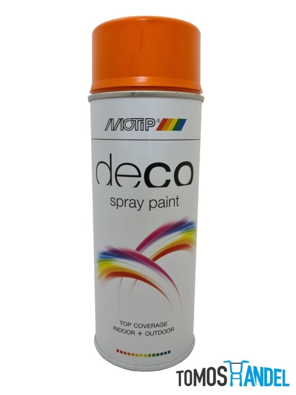 Motip spuitbus rode lak (RAL 2004) helder oranje. Alkyd lak, niet overspuiten met acryllak of nitro-cellulose lak. Primer aanbrengen.Specificaties