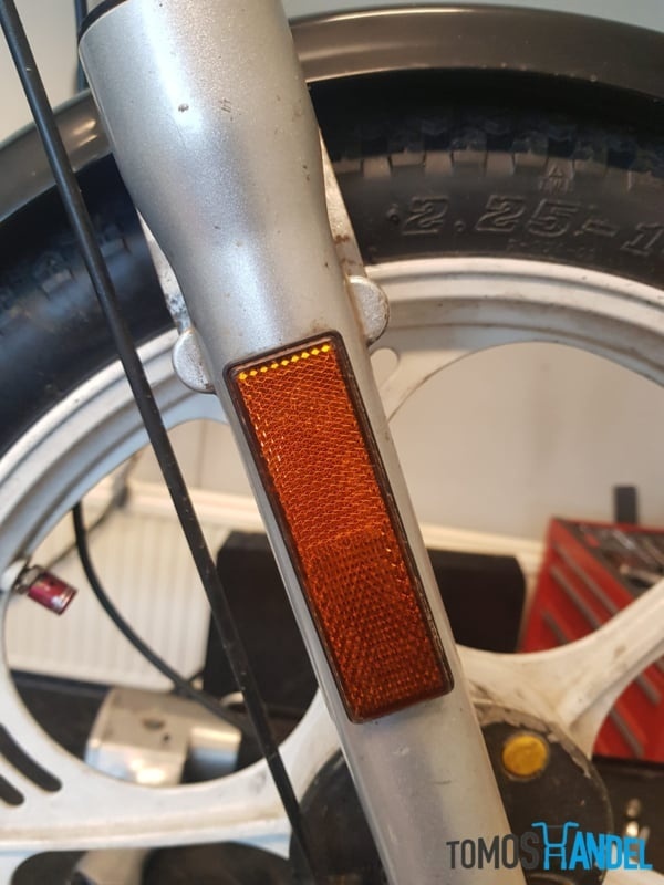 Originele reflector voor op de voorvork van een Tomos.Specificaties