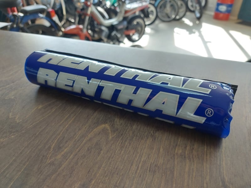 Renthal imitatie barpad / stuur rol. Blauw met witte leteers. Per stuk. Lengte= 20 cm. stuurrol.Specificaties