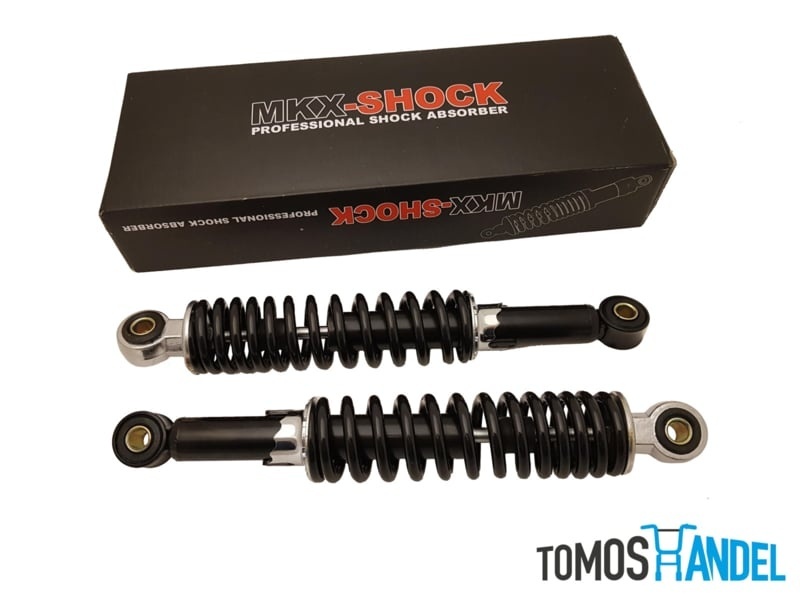 Zwarte set schokbrekers / veerpoten 300mm van het merk MKX. In hoogte verstelbaar.Specificaties