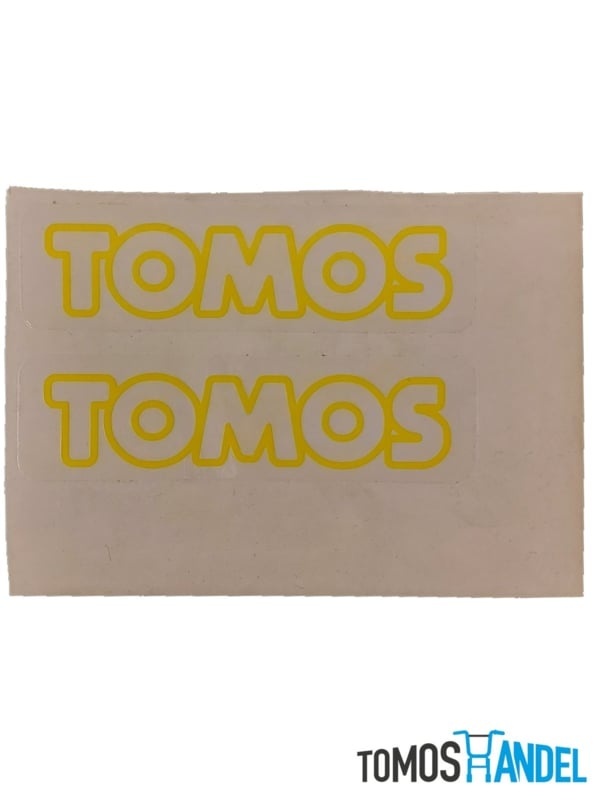 Tomos sticker geel 2x. De stickers zijn ongeveer 9,5cm lang en 2,5cm breed. Per set van 2 stikkers.Specificaties