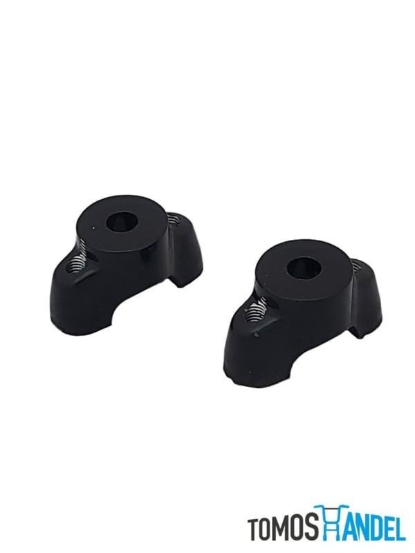 Stuurklem bevestiging set. 2 stuks (zoals op de afbeelding). Om je stuur mee op een oud type voorvork te bevestigen. Origineel Tomos A35 / A3 / S25.Specificaties