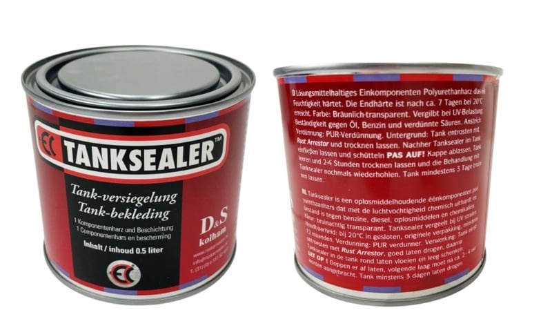 Universele tank sealer / tank coating coater. Ideaal voor als je de benzinetank hebt ontroest met ontroester en vervolgens een nieuwe beschermlaag wil aanbrengen. 1 blik is voldoende voor een Tomos tank.Specificaties