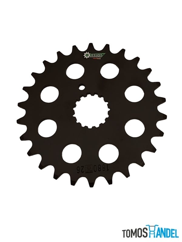 Tandwiel met 26 tanden. Te gebruiken als voortandwiel voor A35 modellen en als achtertandwiel voor Tomos Youngster, Funtastic, etc. Vervang je tandwielen en ketting altijd als een set, deze slijten op elkaar in!Specificaties