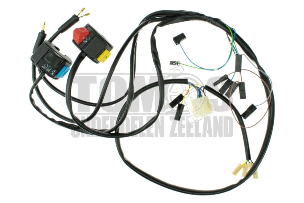 Bij TomosOnderdelenZeeland vind je hoogwaardige Kabelbomen die zorgen voor een veilige en stabiele elektrische verbinding in jouw brommer. De kabelboom vormt het hart van het elektrische systeem en verbindt alle onderdelen zoals verlichting, claxon, ontsteking en contactslot met elkaar. Onze kabelbomen zijn zorgvuldig samengesteld, voorzien van de juiste stekkers en kleuren, en passen perfect op modellen zoals de Tomos A3, A35, Quadro en Overige modellen. Ze zijn eenvoudig te monteren, duurzaam en bestand tegen trillingen en vocht. Zo blijft jouw Tomos elektrisch systeem betrouwbaar en storingsvrij.